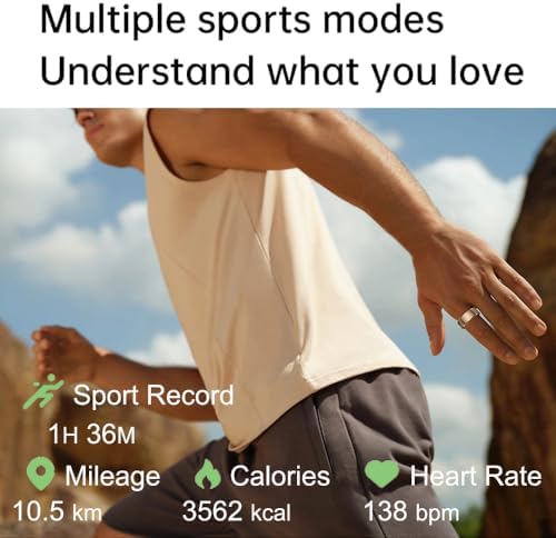 Sport Fitness Ring: Take your fitness routine to the next level with built-in health monitoring features. Track your steps, calories consumption and distance automatically. Turn on the sport modes in the App, it will additionally track your sport route, activity time and heart rate during exercise, this allows you know when you should save motivation or keeping exercise hard, also let you know the real-time sport performance.