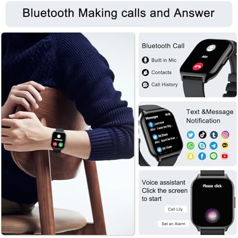 2 Watch Straps, 2 Wearing Styles – Smart watches for women men adopts a larger and higher-definition screen design, and come with two watch bands of different colors.(Receive/Dial) and message notifications can be displayed directly on screen.Smart watch for android phones contains many dials readily available to choose from along.You can also DIY watch faces with your own photos.Smart watch for iphone compatible can be any photo,such as your family,pet,et