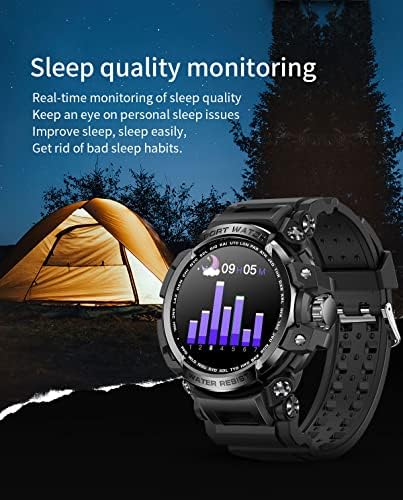 This men’s Fitness Watch Includes More Practical Functions, Fitness Tracker Watch (Pedometer,Calorie Consumption , Distance), Heart Rate/Blood Pressure/ Blood Oxygen Monitor , Sleep Monitor, Weather Display, Sedentary Reminder, Alarm Clock, Stopwatch, All Day Activity Tracking and Offer Comprehensive Analysis of Your Exercises and Sleep to Better Understand Your Physical Condition.