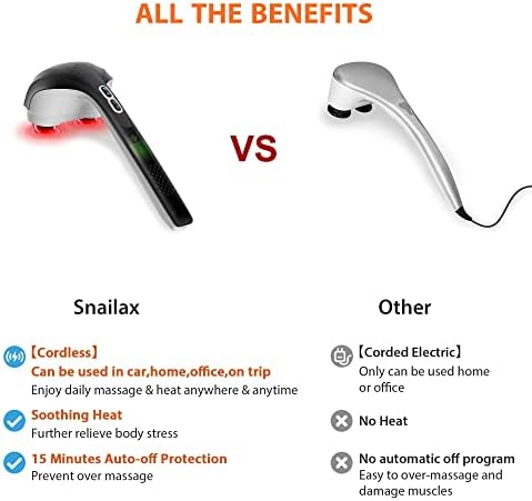 Cordless & Long Battery Life: Snailax Cordless Handheld back massager has a built-in rechargeable lithium-ion battery that can work 80 mins on per full charge. The massager is lightweight(only 2.6lbs) and portable. Take it with you and enjoy a relaxing massage anywhere on the train, airplane or car.