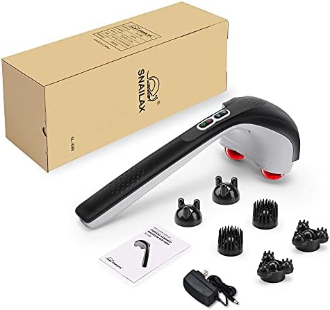 Snailax Cordless Handheld Back Massager with Heat,Deep Tissue Percussion Massager, 3 Sets of Dual Pivoting Heads,Rechargeable Hand Held Massager for Neck,Back Shoulder,Calf,Legs