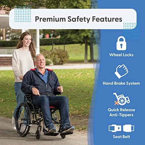 Smooth Ride Every Time – With 8″ front caster wheels and 22″ quick release flat free rear tires, our all-terrain wheelchair lockable wheels are perfect for outside usage or maneuvering around your home