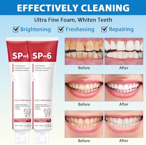 Sp-6 Ultra Whitening, Sp-6 Ultra Whitening Toothpaste, Sp 6 Toothpaste, Probiotic Brightening Toothpaste, Sp-6 Toothpaste Fresh Breath, Deep Cleaning Care Toothpaste(120g*2PCS)
