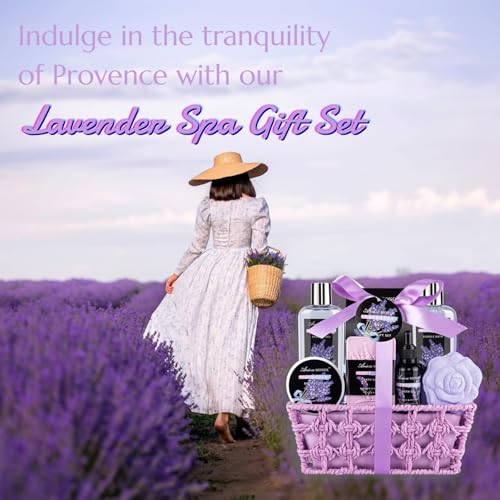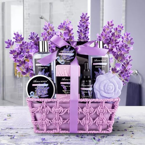 Spa Bath Gift Basket Set, Lavender Home Spa Gift for Women, with Shower Gel, Bubble Bath, Body Butter, Bath Salt, Bath Bomb, Bath Oil, Bath Soap,Gift Idea for Mother, Girlfriend, Wife