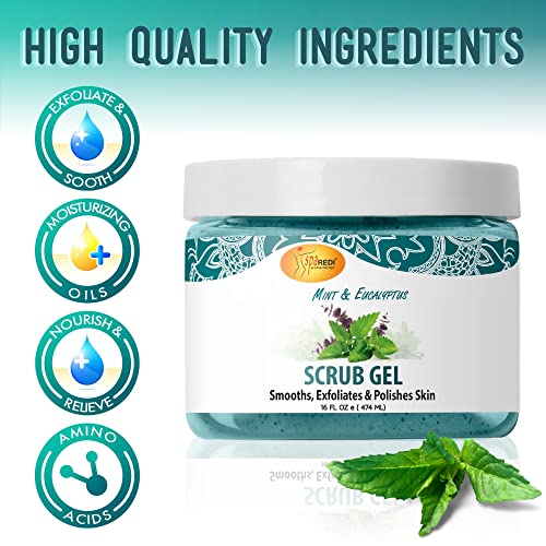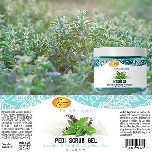 SPA REDI – Exfoliating Scrub Pumice Gel, Mint and Eucalyptus, 16 oz – Manicure, Pedicure and Body Exfoliator Infused with Hyaluronic Acid, Amino Acids, Panthenol and Comfrey Extract