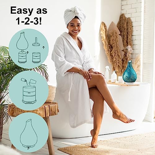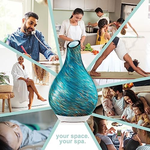 SpaRoom Teardrop Glass Aromatherapy Ultrasonic Misting Essential Oil Diffuser for Large Rooms, Seascape