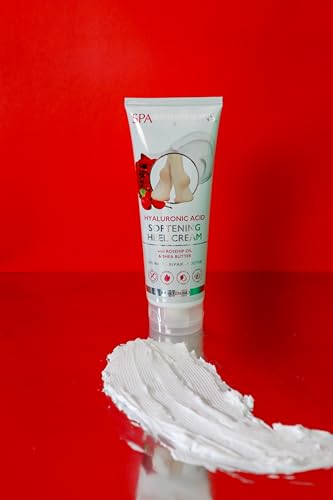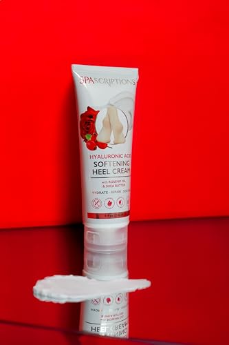 SpaScriptions Hyaluronic Acid Softening Heel Cream, Moisturizing Lotion with Rosehip Oil & Shea Butter, Repair Dry, Cracked Feet, 8 oz Tube
