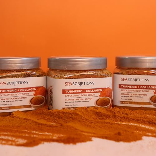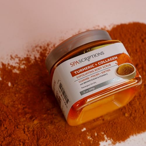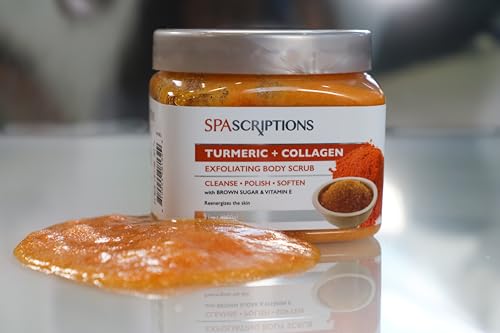Spascriptions Turmeric + Collagen Exfoliating Body Scrub, 21 oz, Ultra Hydrating and Exfoliating Scrub for Nourishing Essential Body Care