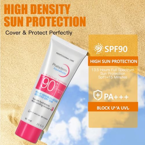 Gentle Ingredient High SPF 90 Sunscreen, Face Sunscreen Moisturizer with SPF 90, Sports Face Sunscreen for Sensitive Skin, Non Greasy, No White Cast, Face Sunscreen for Sensitive Skin, Sweatproof Sunscreen for Face and Body SPF 90 .