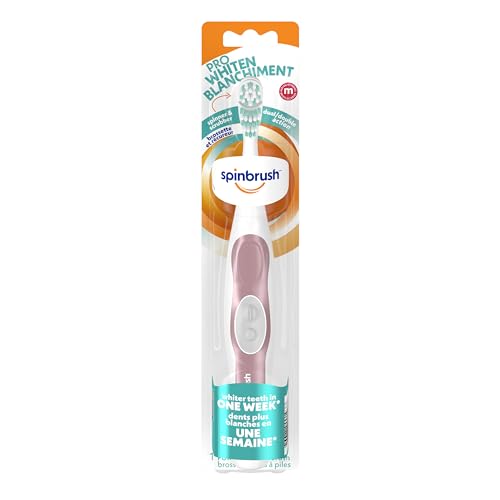 This toothbrush bundle pairs two battery-powered Spinbrush models to provide superior teeth cleaning and whitening. The Spinbrush PRO+ Extra White features a patented dual action brush head with two moving parts to clean deep between teeth and gums. Its elongated whitening bristles and cup help remove 100% more plaque than a manual brush for whiter teeth. The Spinbrush Pro Whiten has a rotating whitening cup and whitening bristles clinically proven to whiten teeth in one week. Its dual action brush head oscillates up to 3,900 sweeps per minute to lift stains. With replaceable heads and color-wear bristles that fade when it’s time to switch, both toothbrushes make oral care simple. The soft bristles gently clean while the medium bristles offer a deeper clean. Together, the two models address both deep cleaning and whitening needs for a brighter, healthier smile.