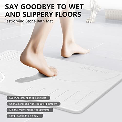 Dry Up Quickly – Stop getting the bathroom wet. Step onto our nonslip stone bath mat and dry your feet quickly! Made with natural diatomite, it absorbs water and makes it evaporate in no time.