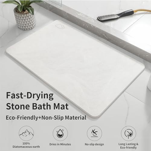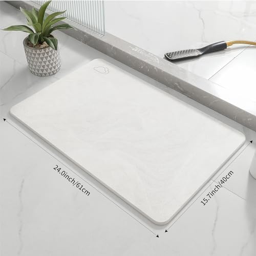 Stone Bath Mat – Quick Dry & Non-Slip Diatomaceous Earth Bath Mat, Super Absorbent Diatomite Stone Bath Mats for Bathroom Floor, Kitchen Counter, Tub, Stone Shower Mat (23.5″x15″,Marble White)