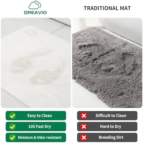 【QUICK DRY BATH MAT】Elevate your daily life you deserve with our luxurious DREAVIO Stone Bath Mat. Made from diatomaceous earth, our stone bathroom mat has exceptional absorbency and moisture-wicking properties that quickly evaporate water from the surface. Leaving your feet and bathroom dry in minutes when you step out of the shower, and keep your bathroom dry and hygienic at all times.