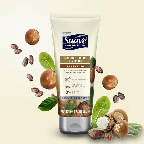 DERMATOLOGIST-TESTED: With its fast-absorbing blend, Suave Nourishing Lotion Cocoa Shea leaves skin feeling touchable, radiant, and never greasy.