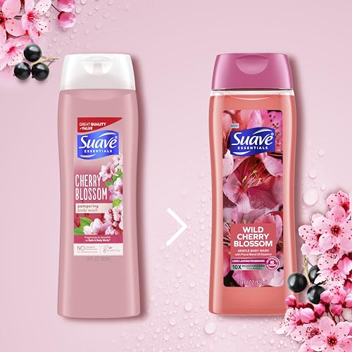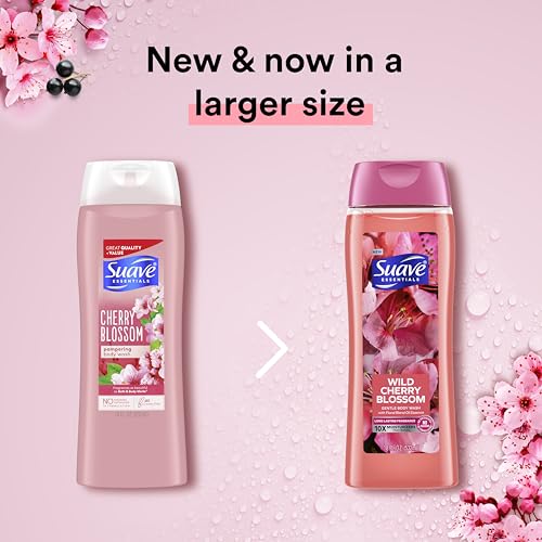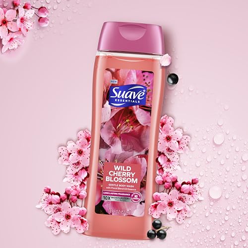 Soak in the blooming long-lasting aroma of cherry blossom, sweet jasmine and luscious black currant. Our creamy lather features floral blend oil essence and is bursting with bubbles, leaving your skin feeling instantly hydrated and silky smooth. Our Wild Cherry Blossom body wash is infused with vitamin E, known to condition skin. This Suave Essentials shower gel can help leave your skin feeling soft and smooth, not dry. To use, wrap yourself in bubbly lather. Rinse. Feel your skin smile. This liquid body wash creates a rich, creamy lather that rinses clean for an enjoyable shower experience. Suave body washes and shower gels are perfect for everyday use and great for the whole family. Suave body wash and shower gel skincare products are made with fun, fresh scents that will help leave your skin feeling clean and soft, and smelling great. Whether you prefer beautiful floral blooms, fresh and fruity bursts or luxuriously creamy body washes, we’re sure you’ll love our fragrances. We invite you to try all of our delightfully crafted Suave Essentials body wash fragrances and let your senses decide on the best body wash for you. *Bath & Body Works is a registered trademark of Bath & Body Works Brand Management, Inc.