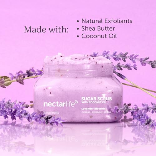 Sugar Body Scrub, Exfoliating Body Scrub with Moisturizing Shea Butter and Coconut Oil, Paraben Free, SLS Free, Cruelty Free Skin Care for Women and Girls, Handmade Fresh, 8 Oz (Lavender)