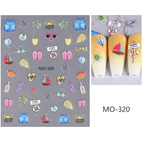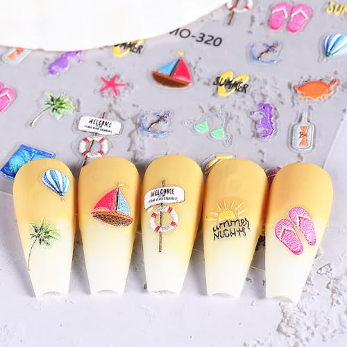 [5D Embossed Nail Stickers] You will get 3 sheets summer nail stickers, unique three-dimensional effect, will not fade, more realistic than ordinary stickers, you can well create a different nail effect.