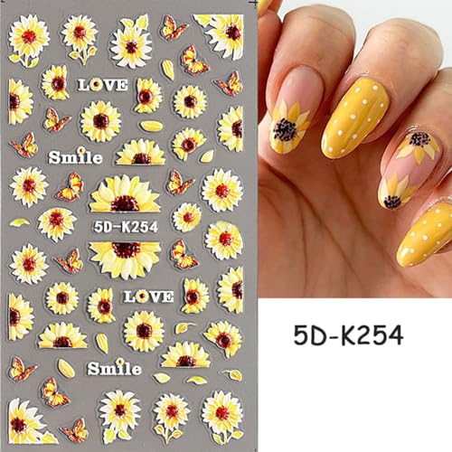 Sunflower Nail Stickers: 5D yellow sunflower nail stickers for nail art are the perfect fashion accessories. Different flower patterns for you to use and replace in daily life, nail decals are full of sensuality and elegance, Various charming patterns bring you a different mood.