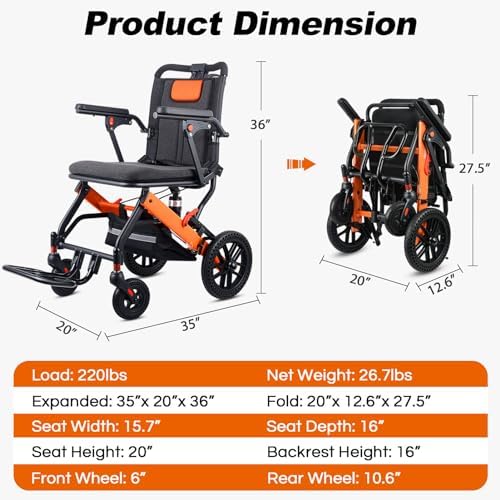 🦽【Travel Wheelchair】 This portable wheelchair is a perfect travel wheelchair, because it is easy to fold and fits easily into the trunk of a car. It can be carried on board an airplane, and the wheelchair comes with a carring bag.