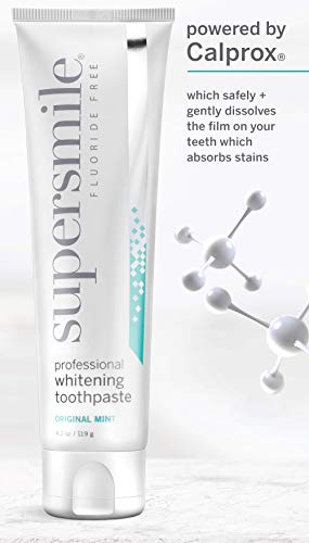 The Supersmile Professional Teeth Whitening Toothpaste removes stains with powerful whitening agents such as carbamide peroxide. Clinically proven to whiten teeth 6 shades on average and restores bonded teeth, veneers, caps, and dentures to their original shade.