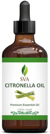 Premium Quality Citronella Essential Oil: SVA Citronella Essential Oil 4oz is an essential oil and is obtained by steam distillation of Cymbopogon Winterianus grass. Our Citronella oil is free of preservatives and comes with a dropper for easy application. It is not tested on Animals. We care for you