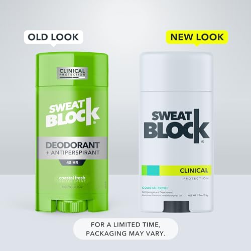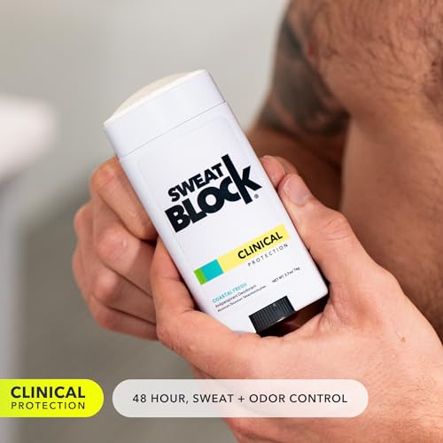 SweatBlock CLINICAL Deodorant Antiperspirant for Women & Men – 48-Hour High Degree Sweat & Odor Protection, Coastal Fresh Scent (2 Pack)