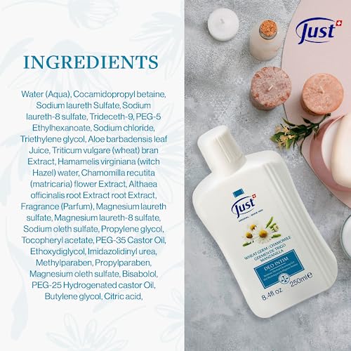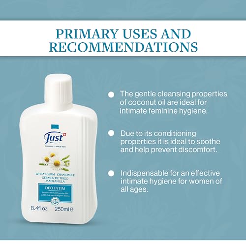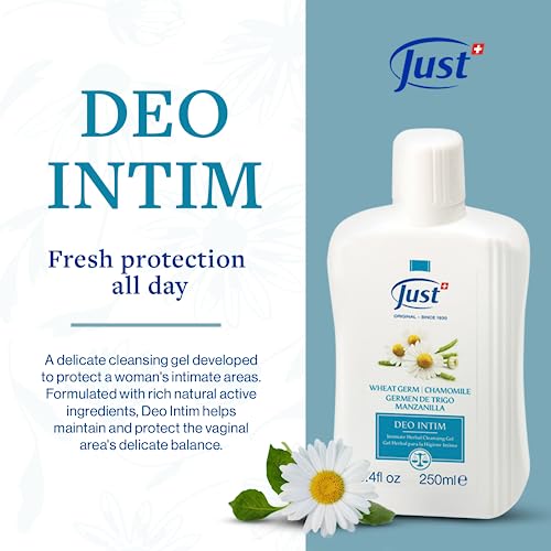 Swiss Just Deo Intim Cleansing Gel 250ml. Feminine Wash Formulated with Rich Ingredients. A Delicate Cleansing Gel and pH Balancing Cleanser. Moisturizing Feminine Care & Gentle Intimate Wash