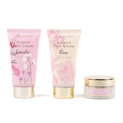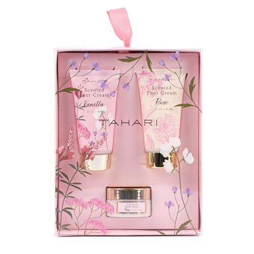Step into a realm of indulgence with the Tahari Foot Care Gift Set for Women – an oasis of relaxation featuring vanilla-scented foot cream (50ml tube), rose-scented foot cream (50ml tube), and rose foot scrub (38ml pot), each elegantly presented. This curated collection isn’t just a gift; it’s a celebration of self-care, making it an ideal birthday present for the extraordinary women in your life.