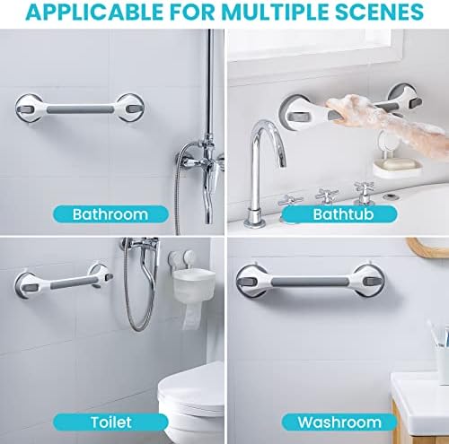 【Easy for Installation】Each suction cup shower handle equips 2 Strong suction cups with locking latches to provide stable protection. The bathtub hand rail ONLY needs to pull down the latches with 5 seconds and the installation is done, quickly and effortlessly! NO drilling, NO screws, NO glue and NO tools are required, fully removable, reusable and causing no damage to your wall.