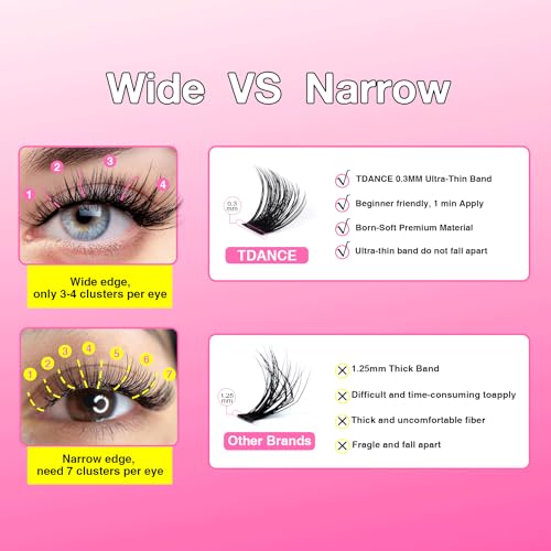 🎀【High-Quality Lash Cluster】 TDANCE cluster eyelashes are hand-made of the highest quality Korean fiber, vegan, cruelty-free, and virtually weightless. Ultra-light, tapered end, comfortable to wear.