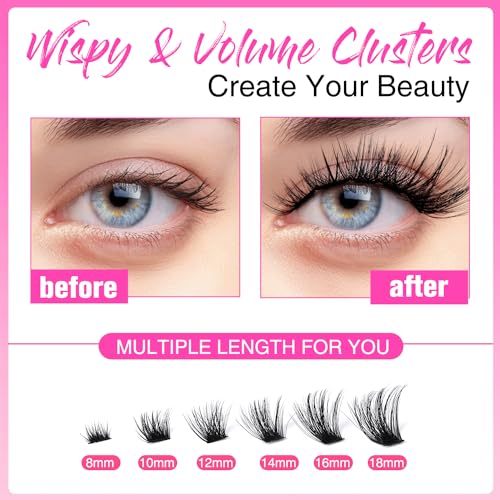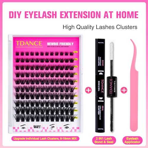 TDANCE Magic Volume Lash Clusters DIY Lashes Extensions Kit 8-18mm Length D curl Eye Makeup Eyelash Extensions with Lash Bond and Seal and Lash Applicator