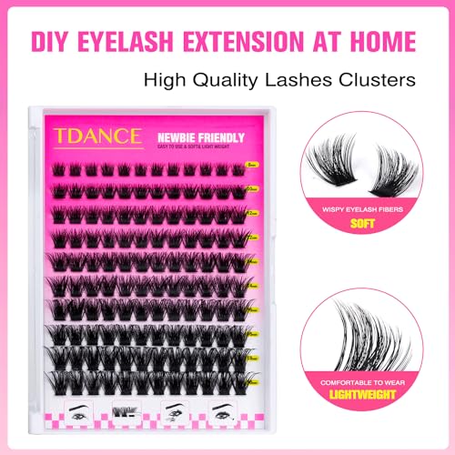 🎀【All-Inclusive DIY Lash Extension Kit】The TDANCE cluster lash kit provides everything you need for your shiny lashes. You will get 280 PCS cluster lashes, 1* lash bond and seal,and 1* lash applicator per box. Bring salon-quality eyelash extensions to your home in just 3-5 minutes with the TDANCE eyelash cluster kit.