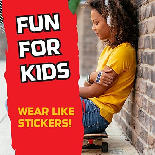 Tech Deck Kids Adhesive Bandages, 100 ct | Wear Like Stickers, Childrens Adhesive Bandages for Minor Cuts, Scrapes, Burns. Easter Basket Stuffers for Kids & Toddlers