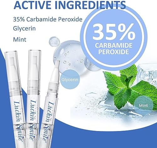 PROFESSIONAL TEETH WHITENING- Luckin Smile professional teeth whitening pens contain 35% carbamide peroxide, which is a safe peroxide that quickly removes years of accumulated stains from coffee, tea, wine, cigarettes and more. Remove tooth stains quickly and effectively!