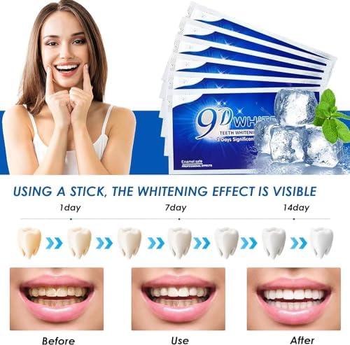 🦷Easy to Use: Our whitening strips are super easy to use. Simply place the teeth whitening strips on your teeth and wait 30 minutes. For a whiter, long-lasting and confident smile, use the teeth whitening strips for 30-45 minutes for 28 days. The whitening results can last for 9+ months.