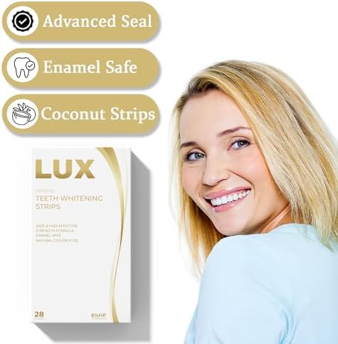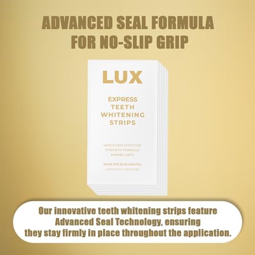 EFFECTIVE STRENGTH FORMULA: LUX Teeth Whitening Strips enable you to get a brighter smile quicker. Our strong solution whitens teeth by eight levels in just 12 days, essentially eliminating ten years of difficult, set-in stains. These whitening teeth strips provide secure and efficient whitening care, producing results and increasing your confidence with a dazzling, whiter smile.