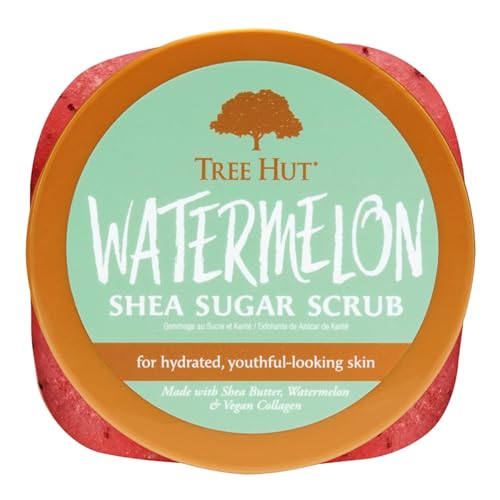 Experience an intense exfoliation and reveal soft, glowing skin with the skin-quenching scent of Watermelon! Made with Sugar, Shea Butter, Watermelon, Vegan Collagen and an array of natural oils including Evening Primrose, Avocado, Macadamia, Sweet Almond, Safflower and Orange Oils. Deeply nourish and balance skin’s hydration to help restore skin’s natural glow. Exfoliating body scrub removes dull, dry skin to reveal glowing, soft, smooth skin. Tree Hut’s Shea Sugar Scrubs are effective exfoliating body scrubs that remove dull, dry skin to reveal glowing, soft, smooth skin. Watermelon is known as a natural humectant that helps prevent moisture loss and it provides gentle, yet effective, exfoliation. Vegan Collagen is known to help give the appearance of smooth and youthful-looking skin. Sugar is Tree Hut’s natural exfoliant that effectively polishes away dead skin while helping to boost circulation to the skin surface. Natural Shea Butter is known to deeply moisturize, nourish and soften dry, skin while helping to promote elasticity. Natural oils condition skin to help prevent dryness and balance hydration for a refined, healthy glow. Tree Hut Shea Sugar Scrubs feature a 6-oil blend of: Avocado Oil, Macadamia Oil, Sweet Orange Oil, Sweet Almond Oil, Evening Primrose Oil, Safflower Oil. Tree Hut Watermelon Shea Sugar Scrub is paraben free, vegan, sulfate free, alcohol free, contains no formaldehyde donors, has a no-slip formula and long-lasting fragrance.