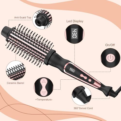Thermal Brush 1.5 Inch Curling Iron Brush Volumizing Brush Heated Round Brush 1 1/2 Inch Ceramic Tourmaline Heated Hot Brush Ionic Curling Iron, Multifunctional Styler Curling Wand (Rose Gold)