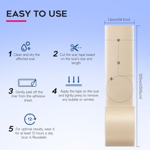 Reusable and Convenient: Unlike scar creams, our scar tape 118”/ 3m roll (over 5 months supply) can be reused and washable, making it more cost-effective. It also prevents the scar from rubbing against clothing at any time, which promotes more effective scar fading and recovery.