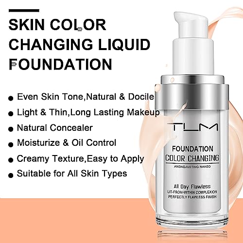 TLM Color Changing Foundation,Nude Makeup Color Changing Concealer,Full Coverage Liquid Foundation Hides Lines,All Day Flawless Moisturizing Oil Control Concealer 2Pcs