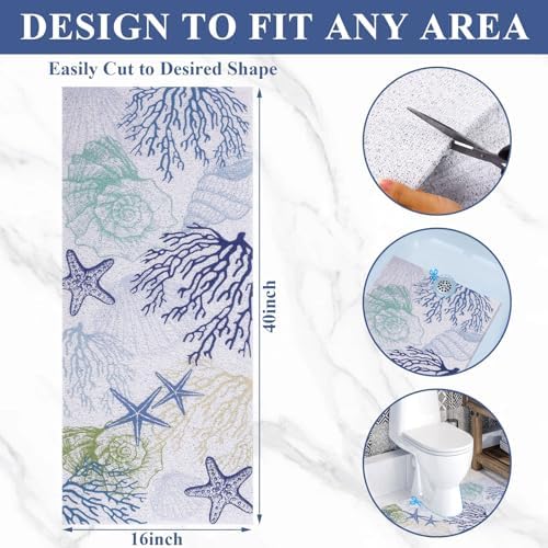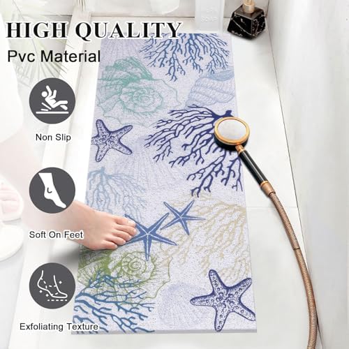 Topotdor Shower Mat Non-Slip Bathtub Mat, 40 x 16 Inch Soft Comfort Bath Mat w/Drain for Textured Surface, Quick Drying PVC Loofah Bathmat for Shower, Tub, Bathroom, Wet Areas(Starfish Coral)