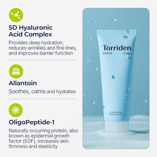 Torriden DIVE-IN Hyaluronic Acid Cream 2.71 fl oz | Facial Moisturizer for Sensitive, Oily Skin | Fragrance-free, Alcohol-free, Lightweight, No Colorants | Vegan, Clean, Cruelty-Free