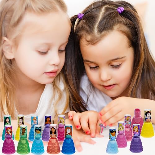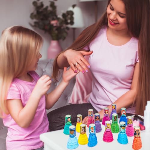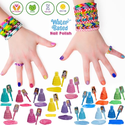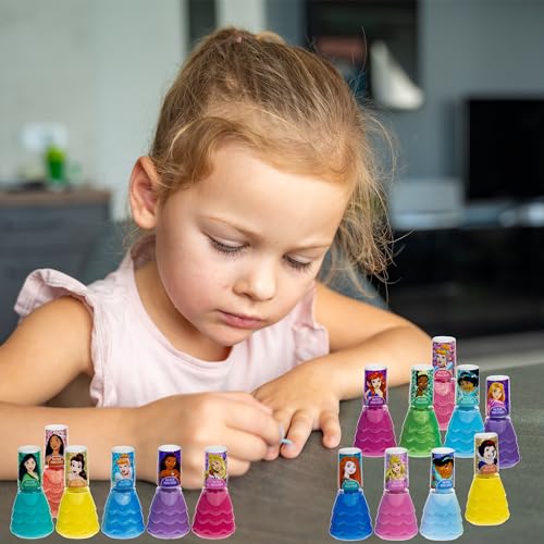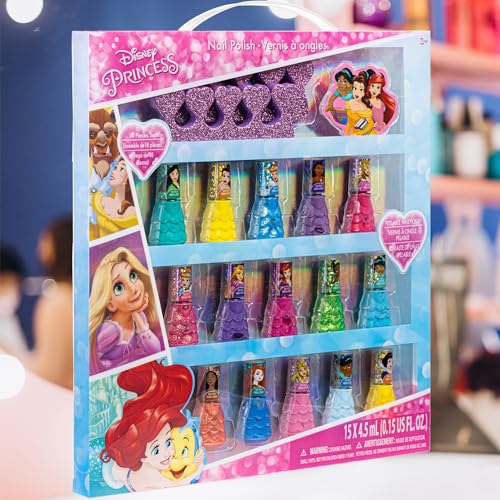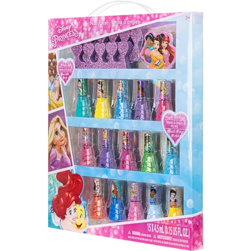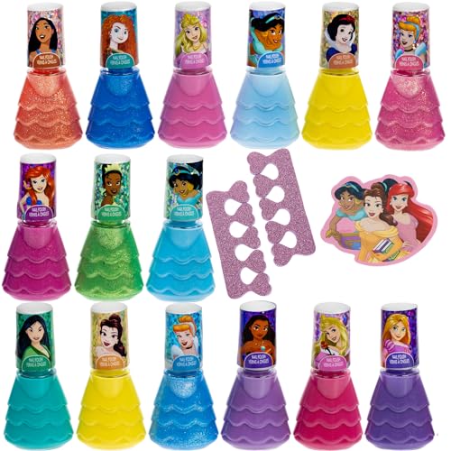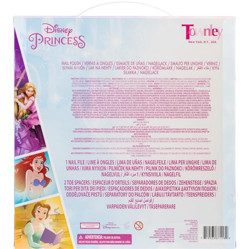 Townley Girl Disney Princess 15 Piece Water-Based Nail Polish with 3 Toe Spacers| Quick Dry| Peel Off| Gift Kit Set for Kids Girls| Ages 3