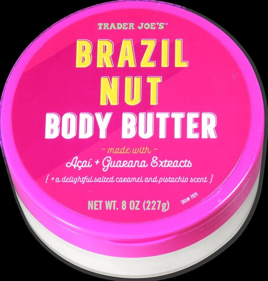 Indulge in the ultimate summer skin treat with Trader Joe’s Brazil Nut Body Butter. This thick and luxurious moisturizer is infused with nourishing ingredients like coconut oil, shea butter, açai extract, guarana extract, and the coveted bertholletia excelsa seed oil. With its irresistible scent of salted caramel, pistachio, and tropical coconut-vanilla notes, this body butter is designed to transform dry skin into a radiant and velvety-smooth sensation. Unlock the lid to discover a whipped texture that goes beyond ordinary lotion, providing intense hydration and rejuvenation for your body.