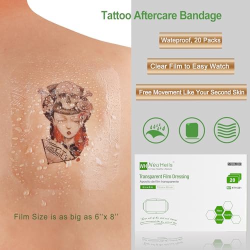 Transparent Film Dressing, Tattoo Aftercare Bandages, Size 6”x8”, 20 Packs, Large Waterproof Wound Cover Patch, Post Surgical Shower Shiled, IV Shield, PICC Catheter Shower Cover