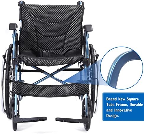 Transport Wheelchair: The new square tube structure wheelchair is made of aluminum alloy, which is only 30lbs. Unfolding size ( L*W*H ): 35.4 * 27 * 34.5″; Folding size ( L*W*H ): 35.4 * 14.9 * 28.7″. It is very convenient when you take an airplane, subway or elevator. You can also put it in the trunk. Meet all your daily needs.