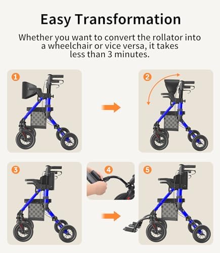 Transport-Wheelchair-Lightweight-Foldable, Walker Wheelchair Combo, Rollator Walkers for Seniors with Seat, 2 in 1 Rolling Walker, 300lb Adults 4 Wheel Transport Chair w/Brakes & Pouch-2024 New