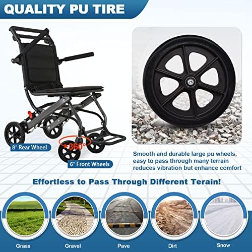 【Safe Wheelchair】Features a seat belt for added safety. the folding transport chair’s seat belt ensures the user is safe when riding. It helps keep them in place and comfortable when seated, it is recommended for people under 5 feet 8 inches in height or under 200 pounds in weight