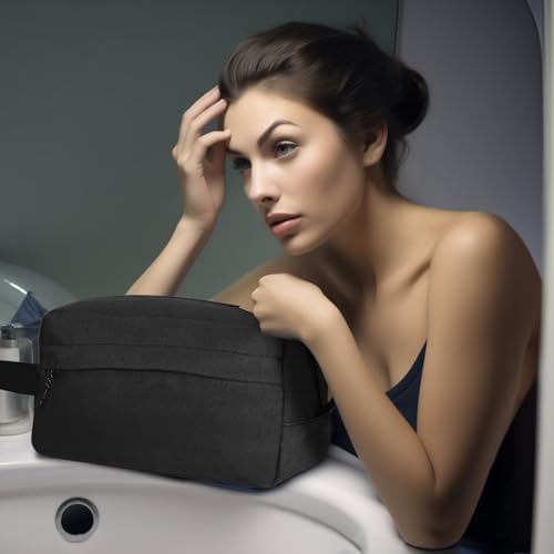 Travel Toiletry Bag for Men Women, Water Resistant Shaving Bag for Toiletries Accessories, Wide-open Dopp Kit Pouch Makeup Organizer Case with Handle for Cosmetics Brushes Tools