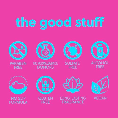 Vegan, paraben free, sulfate free, alcohol free, no formaldehyde donors, has a no-slip formula and long-lasting fragrance
